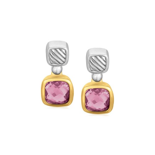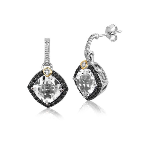 18k Yellow Gold and Sterling Silver Blue Topaz and Diamond Earrings