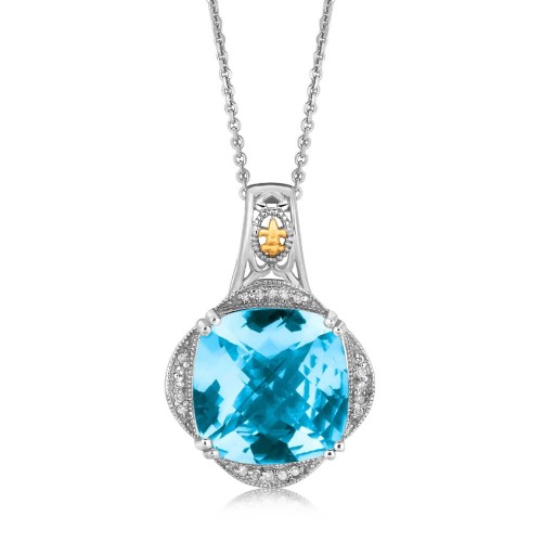 18k Yellow Gold and Sterling Silver Blue Topaz and Diamond Fleur De Lis Pendant 18