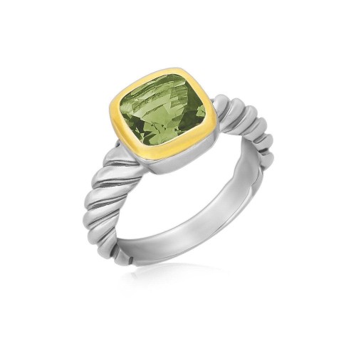 18k Yellow Gold and Sterling Silver Cable Shank Green Amethyst Ring 7