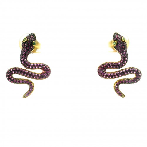 Nano Stone Stud Earrings – Pink Snake with Green Eyes in Gold Vermeil over 925 Sterling Silver