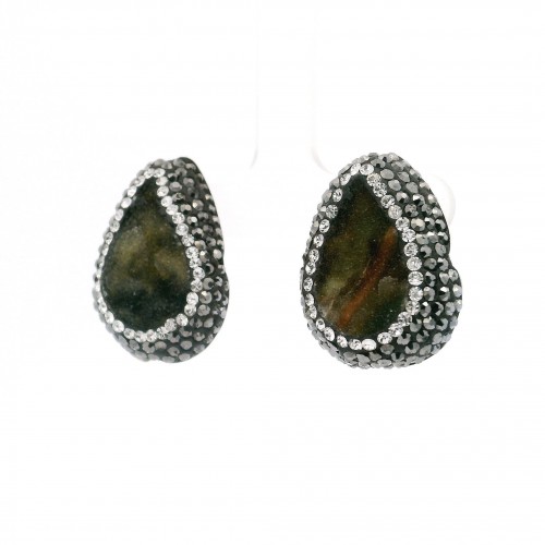 Nano Stone Stud Earrings – Quartz Snake with Green Eyes in Gold Vermeil over 925 Sterling Silver