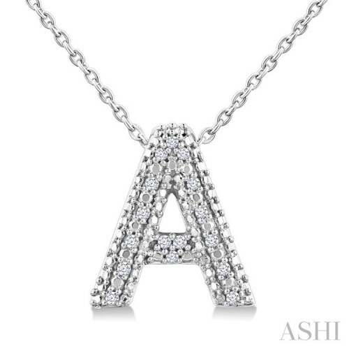 1/20 Ctw Bubble Accent Initial ‘A’ Round Cut Diamond Fashion Pendant With Chain in Sterling Silver