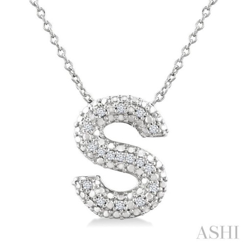 1/20 Ctw Bubble Accent Initial ‘S’ Round Cut Diamond Fashion Pendant With Chain in Sterling Silver