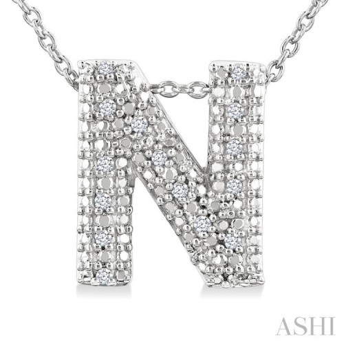 1/20 Ctw Bubble Accent Initial ‘N’ Round Cut Diamond Fashion Pendant With Chain in Sterling Silver