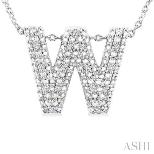 1/20 Ctw Bubble Accent Initial ‘W’ Round Cut Diamond Fashion Pendant With Chain in Sterling Silver