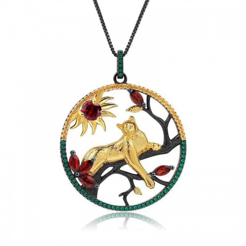 Year Of The Tiger- 1.64 Ct Natural Red Garnet Leopard on the Tree Necklace