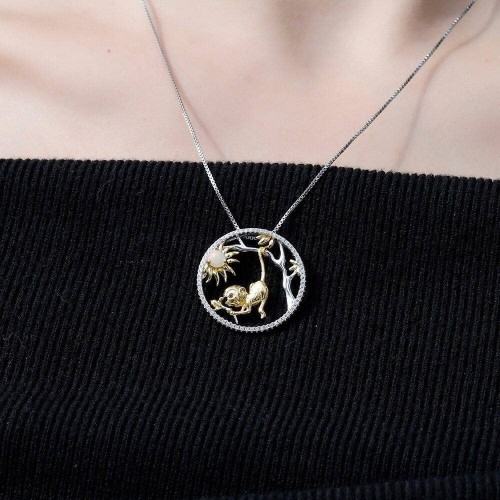 Year Of The Tiger- 1.64 Ct Natural Red Garnet Leopard on the Tree Necklace