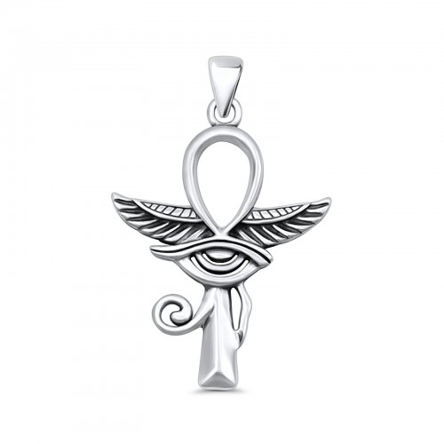 Eye of Horus, Wings & Ankh Pendant Oxidized 925 Sterling Silver Wholesale