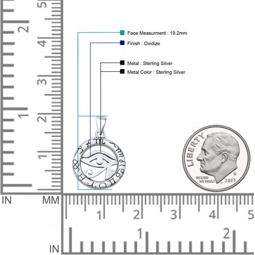 Eye of Horus & Zodiac Pendant Oxidized 925 Sterling Silver Wholesale