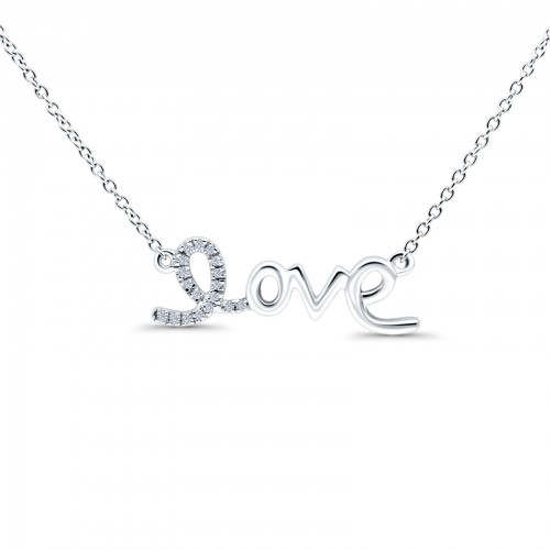 14K White Gold 0.07ct Round Shape Diamond Dangling Heart Pendant Chain Necklace 18″ Long