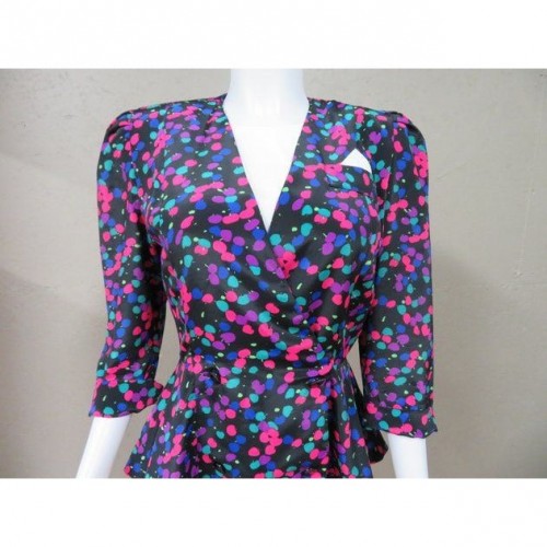 Vintage 1980s Petite by Liz Roberts Dress Groovy Geometric Pattern