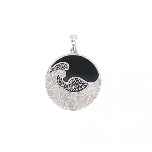 Celestial Midnight Wave Pendant – Sterling Silver with Onyx & Marcasite