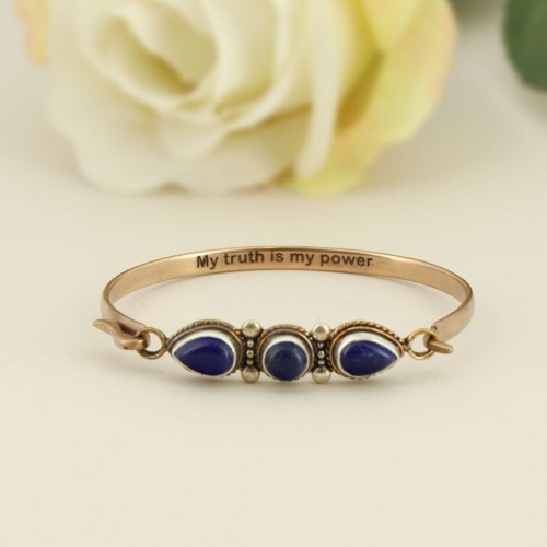 Empowerment Cuff – Lapis Lazuli Trio Bracelet in Sterling Silver & Bronze with Affirmation