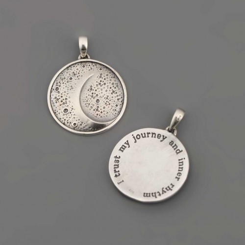 Moon Phase Rhythm Sterling Silver Pendant – Etched Lunar Texture with Inspirational Back Engraving