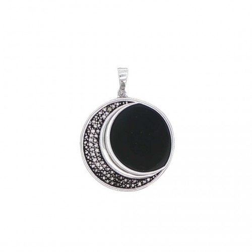 Celestial Crescent Moon Pendant – Sterling Silver with Black Onyx & Marcasite