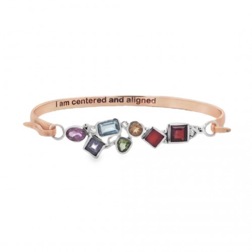 Chakra Alignment Gemstone Cuff – Sterling Silver & Bronze Bracelet with 7 Chakra Stones