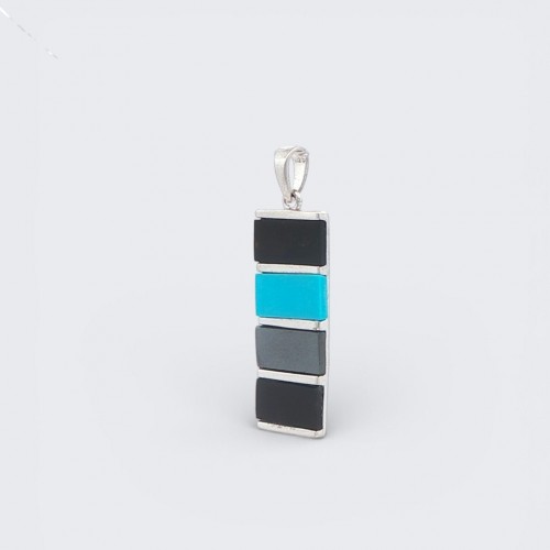 Color Block Protection Pendant – Sterling Silver with Onyx, Hematite & Turquoise Inlay