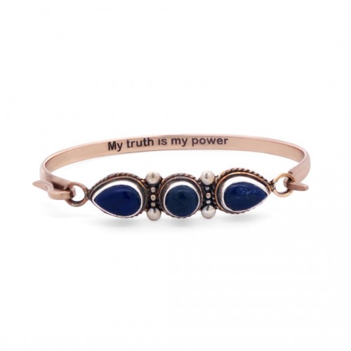 Empowerment Cuff – Lapis Lazuli Trio Bracelet in Sterling Silver & Bronze with Affirmation