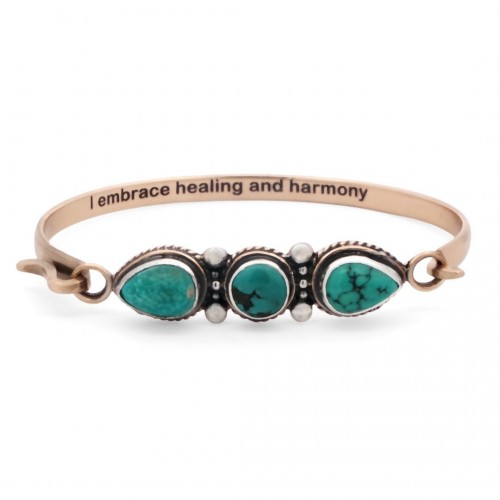 Healing and Harmony Cuff – Tibetan Turquoise Trio Bracelet in Sterling Silver & Bronze