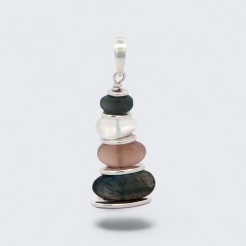 Mixed Labradorite and Moonstone Cairn Pendant with Sterling Silver