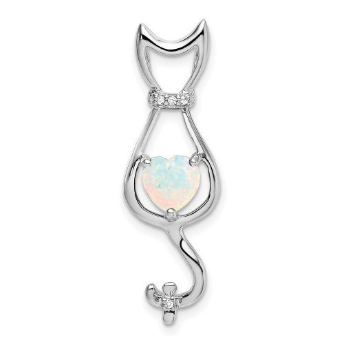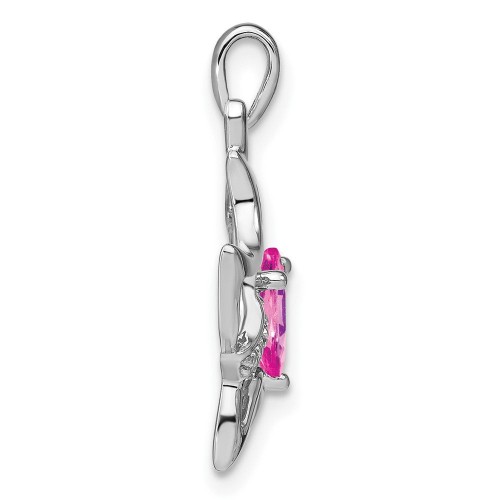 14k White Gold Created Pink Sapphire and Diamond Cat Pendant