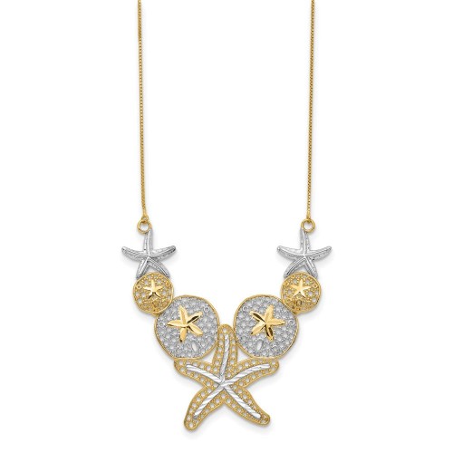 14k with White Rhodium Diamond-cut Starfish and Sand Dollar Necklace 18in