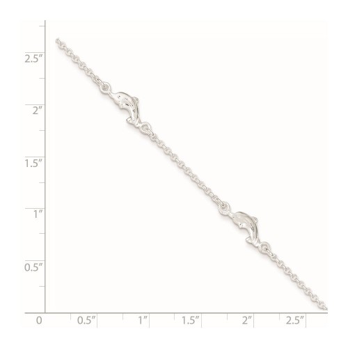 Sterling Silver Dolphin Dangle Plus Extender – Total Anklet 10in