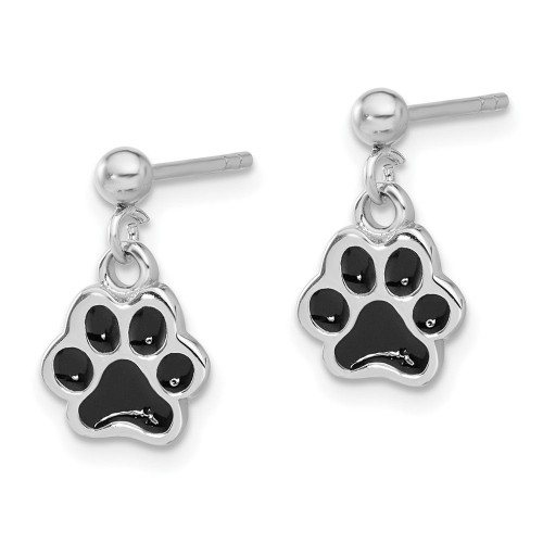 Sterling Silver Rhodium-plated Enameled Dog Paw Post Dangle Earrings