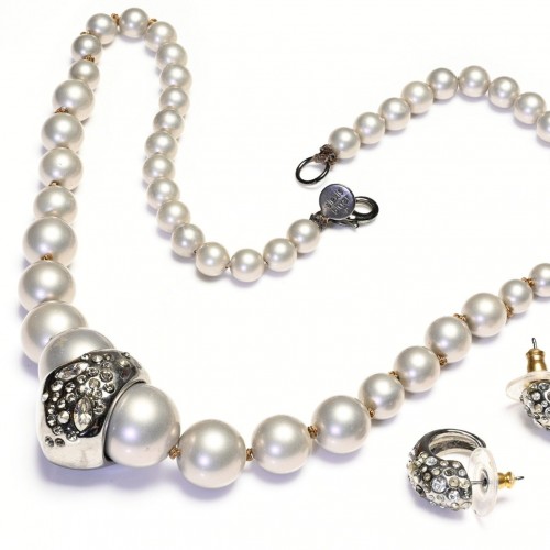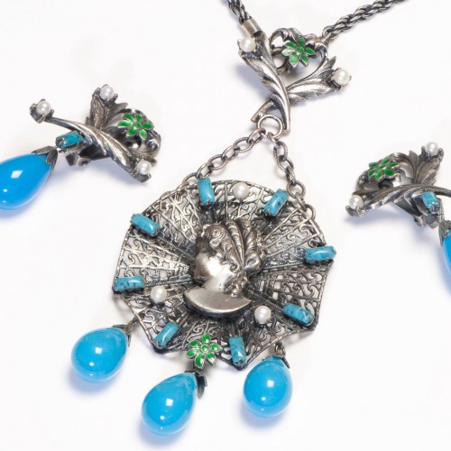 Alice Caviness Victorian Style Lady Web Blue Glass Beads Necklace Earrings Set