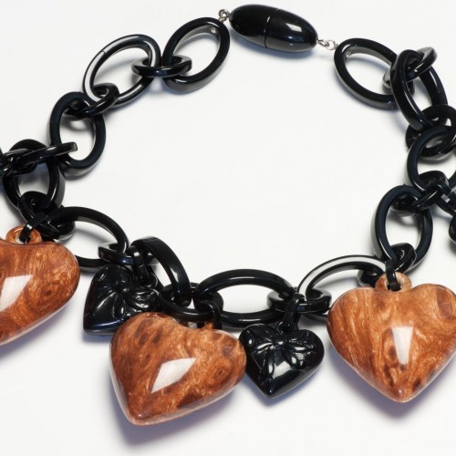 Angela Caputi Black Brown Resin Bow Puffy Heart Chain Link Necklace