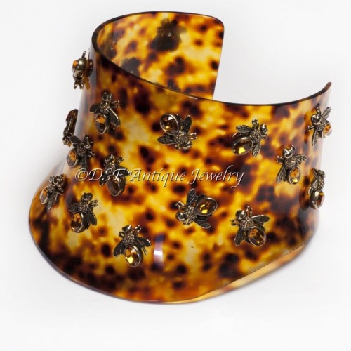 Alexis Bittar Wide Brown Lucite Pearl Crystal Bangle Bracelet