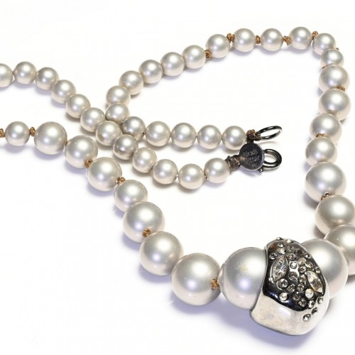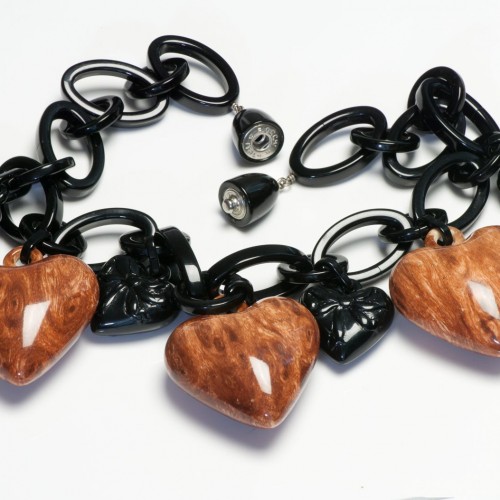 Angela Caputi Black Brown Resin Bow Puffy Heart Chain Link Necklace