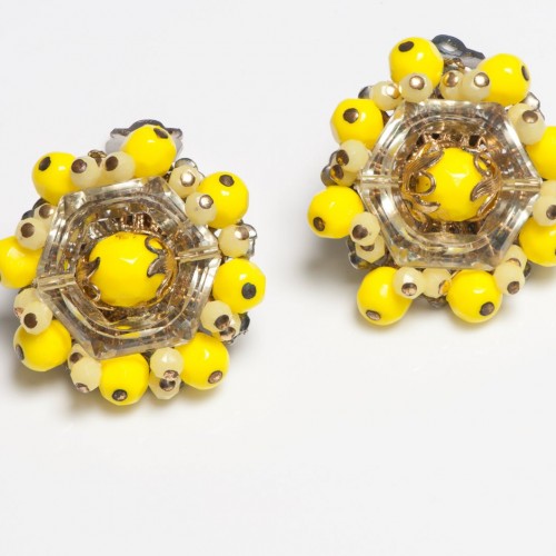 Alice Caviness 1960’s Yellow Glass Beads Earrings Necklace Set