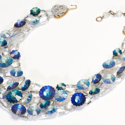Coppola e Toppo 1960’s Blue Green Crystal Beads Collar Necklace