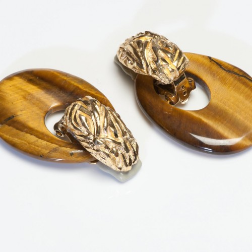 Ciner Gold Plated Tiger’s Eye Interchangeable Door Knocker Earrings