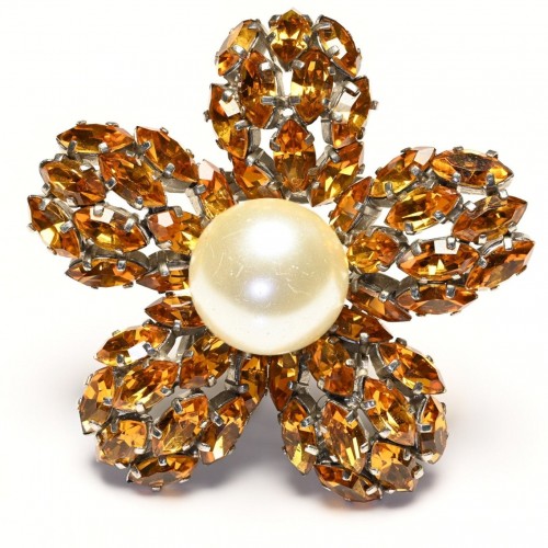 Cristobal Balenciaga by Roger Jean-Pierre Paris 1950’s Brown Crystal Pearl Flower Brooch