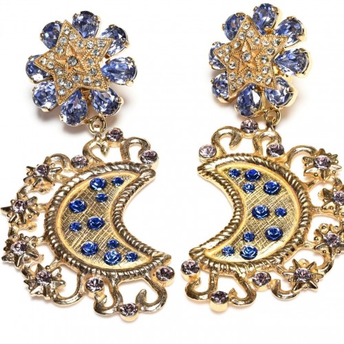Dolce & Gabbana Blue Purple Crystal Moon Star Flower Drop Earrings