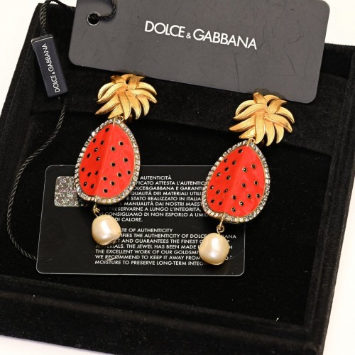 Dolce & Gabbana Long Red Green Enamel Pearl Crystal Watermelon Earrings