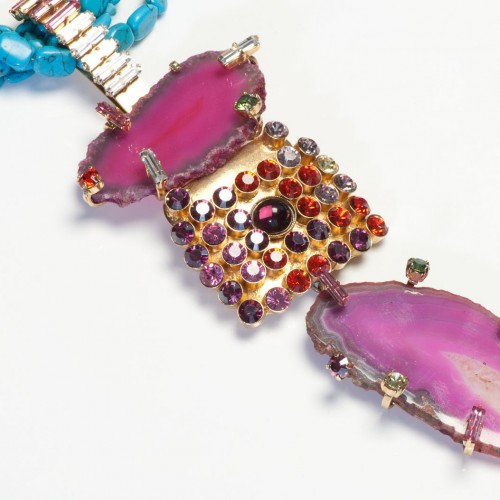 Daniel Swarovski Couture Turquoise Pink Sliced Agate Crystal Pendant Necklace