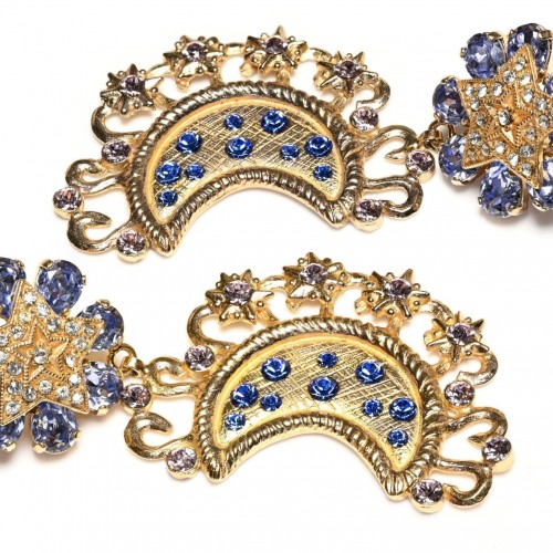 Dolce & Gabbana Blue Purple Crystal Moon Star Flower Drop Earrings