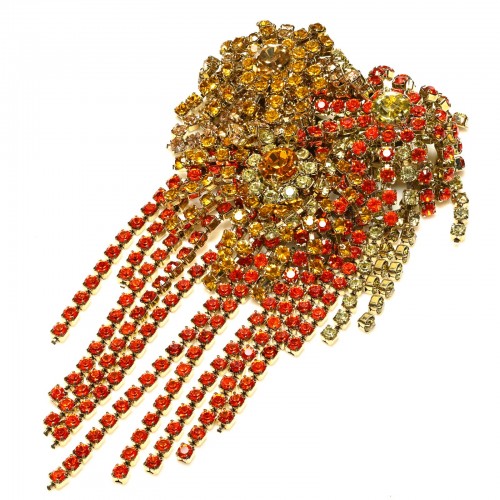 Dries Van Noten Spring 2018 Orange Yellow Crystal Tassel Brooch