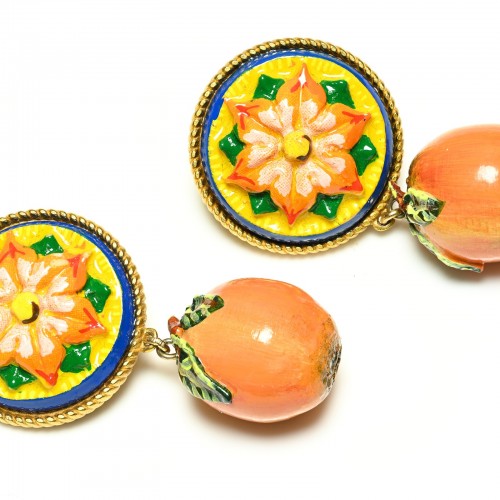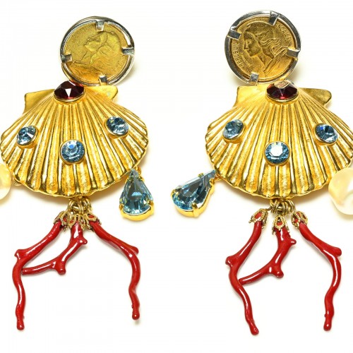 Dolce and Gabbana Gold Plated Pearl Blue Crystal Shell Coin Earrings