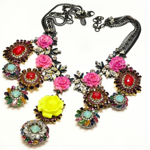 Erickson Beamon Couture Yellow Red Blue Crystal Roses Necklace