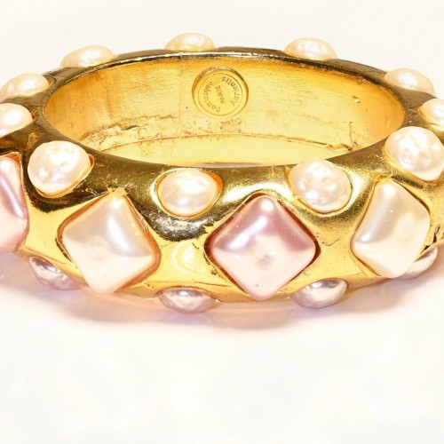 Dominique Aurientis Paris Wide Gold Plated Pink Pearl Bangle Bracelet