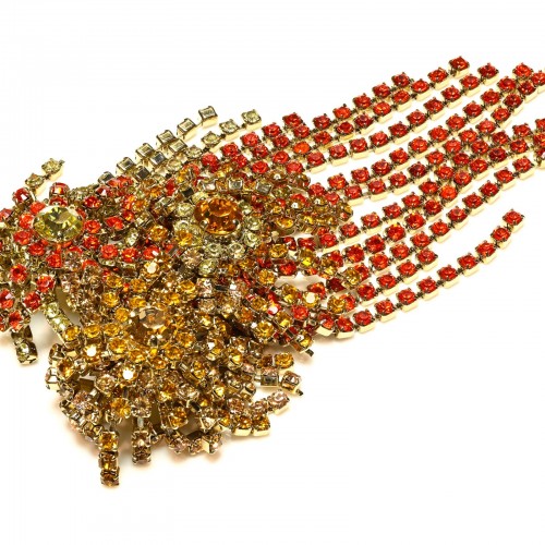 Dries Van Noten Spring 2018 Orange Yellow Crystal Tassel Brooch