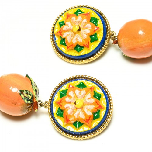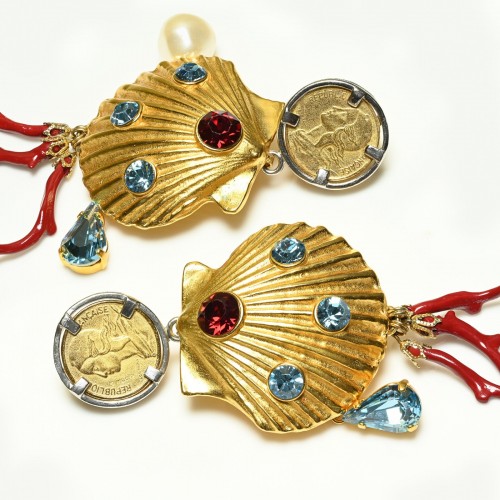 Dolce and Gabbana Gold Plated Pearl Blue Crystal Shell Coin Earrings