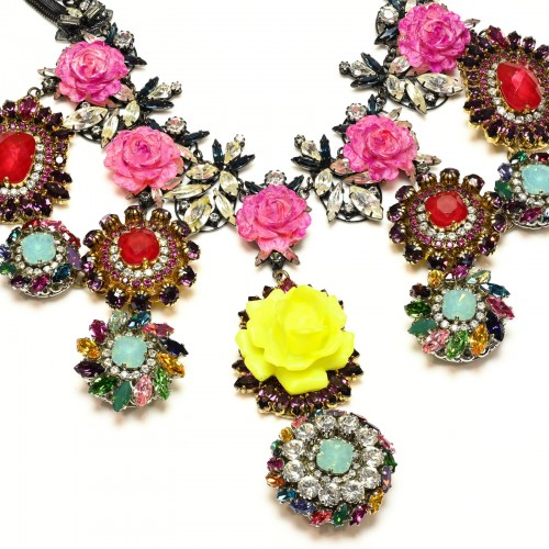 Erickson Beamon Couture Yellow Red Blue Crystal Roses Necklace