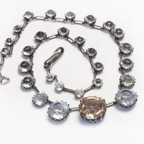 Antique 1900 Sterling Silver White Yellow Paste Rivière Necklace
