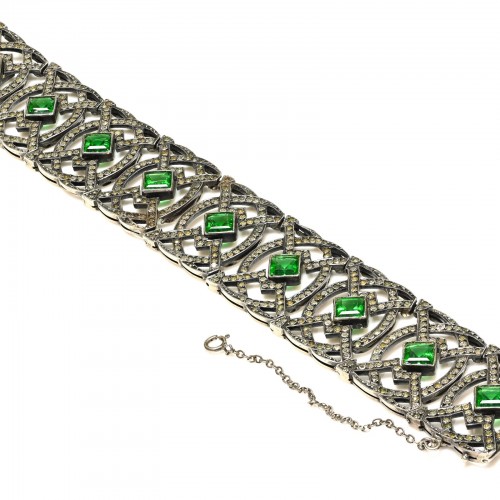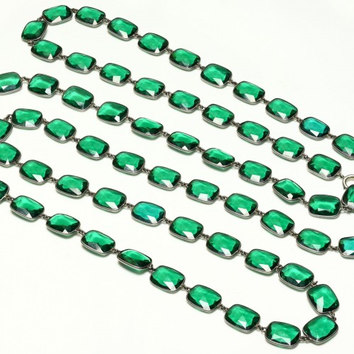 Antique 1900’s Sterling Silver Green Paste Chiclet Sautoir Necklace