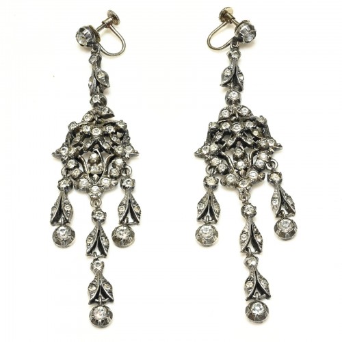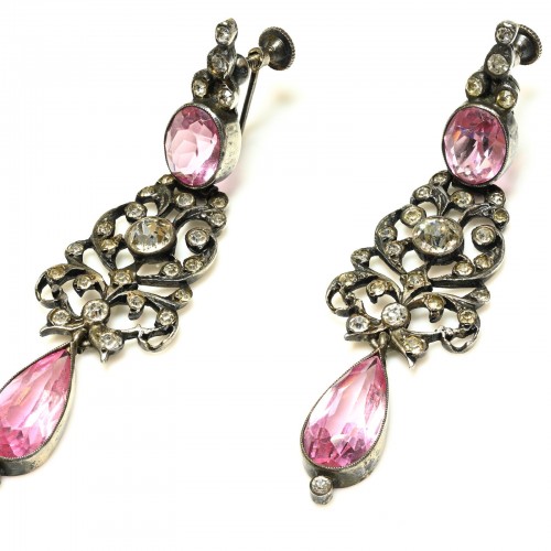 Antique 1900 Belle Époque Sterling Silver Paste Flower Bow Earrings